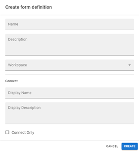 Cada tarjeta de formulario tiene un título y una descripción breve, los cuales pueden completarse y editarse [desde la aplicación ***Build***](https://docs.rpaconnect.io/diseno-de-formularios/readme/creacion-de-un-formulario). Utiliza los campos ***Display Name*** y ***Display Description*** en el apartado ***Connect*** de la definición de formulario para asignarle el nombre o detalle que desees.