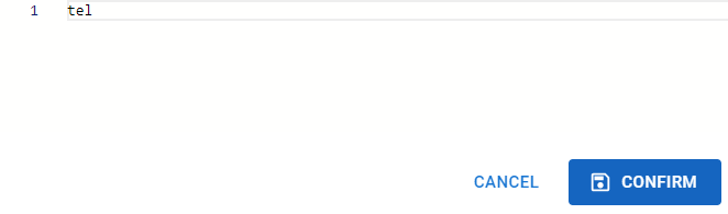 En este caso, simplemente deberás colocar el nombre del campo con la etiqueta "Teléfono" (en este caso, "tel") y pulsar ***Confirm*** para que el valor ingresado allí se vea reflejado en el campo "Número de contacto".