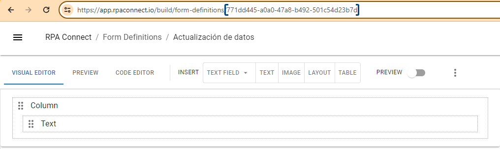 Each time an RPA Connect form instance is generated, an ID and an expiring token are obtained, which allows the creation of a specific link to access the instance via a browser. Let’s see how this process is carried out.