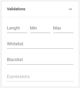 In the Validations section, you can set various conditions that the entered data must meet to be considered valid. By configuring these parameters, you can anticipate different response options and minimize the risk of potential errors, such as a code exceeding the allowed character limit.